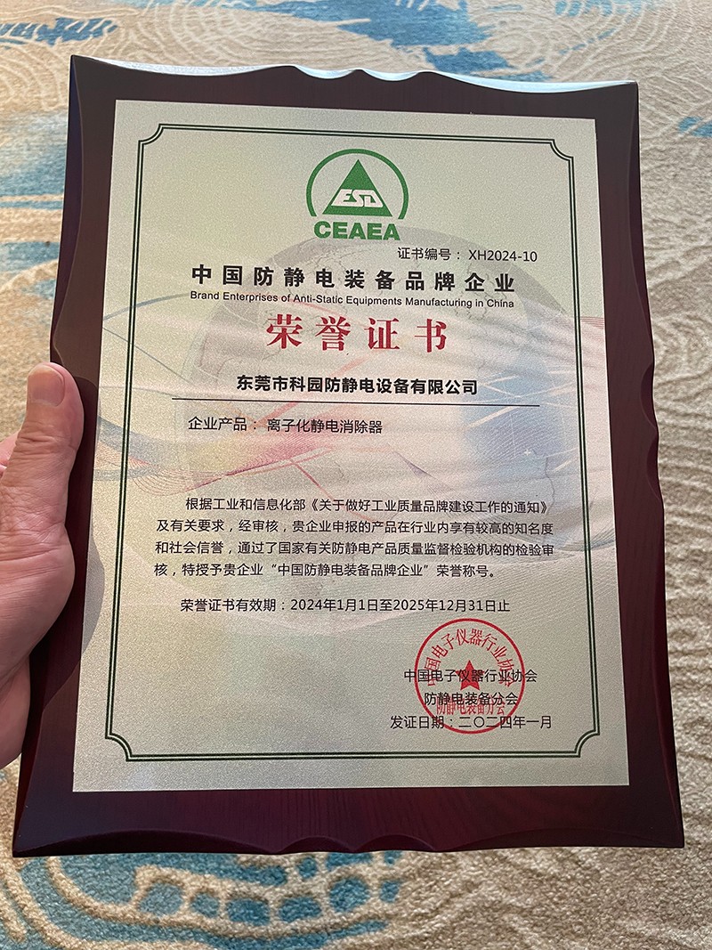 2024年4月19日,卡帕爾參加了中國防靜電協會第九屆會員代表大會,會議上卡帕爾憑借著行業的知名度、良好的市場口碑和眾多的技術創新專利,榮獲了“中國防靜電裝備品牌企業”榮譽稱號和“卓躍貢獻獎”。專注于市場,專注于產品,專注于創新發展,正是這種專注的力量,讓卡帕爾在防靜電領域越走越穩,越走越遠。