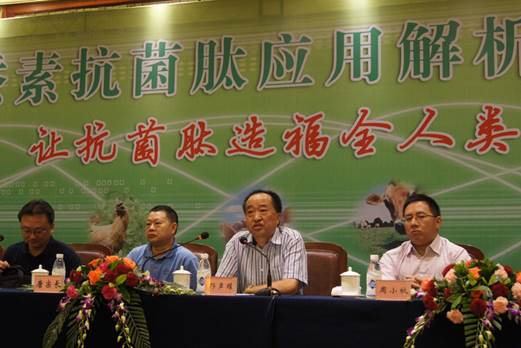 農(nóng)業(yè)部飼料工業(yè)中心副主任、國家飼料工程技術(shù)研究中心副主任、中國農(nóng)業(yè)大學(xué)教授譙仕彥博士在會上做了《抗菌肽研究進展與應(yīng)用趨勢》的報告。闡述了抗菌肽的機理和作用,抗菌肽是生物體內(nèi)經(jīng)誘導(dǎo)產(chǎn)生的一種具有生物活性的小分子多肽,分子量在2000~7000左右,由20~60個氨基酸殘基組成。抗菌肽的抗菌譜比傳統(tǒng)抗生素更寬,既有抗革蘭氏陽性菌和革蘭氏陰性菌的作用,又有抗真菌和病毒的作用。抗菌肽的作用與其對病原菌細胞膜的迅速破壞相關(guān),并且抗菌肽的作用不涉及特定的靶位,完全是陰陽離子的物理作用,而不改變細菌表面的結(jié)構(gòu)和帶電性能,因此抗菌肽幾乎不產(chǎn)生抗藥性。譙博士還詳細講解了抗菌肽在各個領(lǐng)域的應(yīng)用,其中特別分析了在動物上應(yīng)用抗菌肽的實驗數(shù)據(jù)和研究成果。