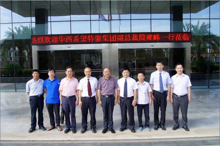 首先華西希望·特驅集團副總裁簡雍鋒、華西希望·特驅集團管理部副部長曾民、華西希望·特驅集團生產技術部羊云飛博士一行在華神公司董事長鄺聲耀、副總黃德興、副總李書偉、華神常務副總陰文奇等領導的陪同下,參觀了華神公司廠區、生產車間、研發中心。