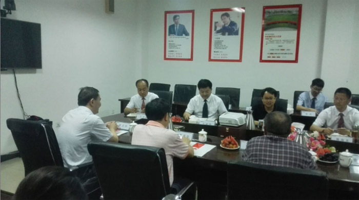 您當前位置: 網站首頁 > 新聞媒體 > 畜科動態6月15日快訊:華西希望·特驅集團副總裁簡雍鋒一行蒞臨華神生物交流參觀。簡總對華神一流的設備和一流的生產工藝贊不絕口,希望加強更進一步的合作。當日,華神公司董事長鄺聲耀研究員也受邀來到特驅集團總部與華西希望·特驅集團王德根總裁率領的高層團隊舉行圓桌會議。