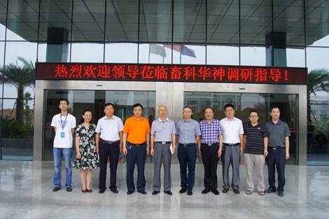 2015年8月12日,在四川省畜牧科學院蔣小松院長,四川科創飼料產業技術研究院理事長、華神生物公司董事長鄺聲耀等人的陪同下,國家科技部農村司蔣丹平副司長、許增泰處長、科技部農村開發中心盧兵友處長、四川省科技廳副廳長韓忠成、副處長游曉峰、四川省農科院副院長任光俊、川農大賈剛教授一行蒞臨成都雙流西航港經濟開發區的四川科創飼料產業技術研究院和四川華神獸用生物制品有限公司進行調研指導。